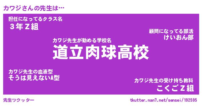 | ヒーロー風カッコイイあだ名 | 『スーパーカワジ』『ウルトラカワジマン』 |