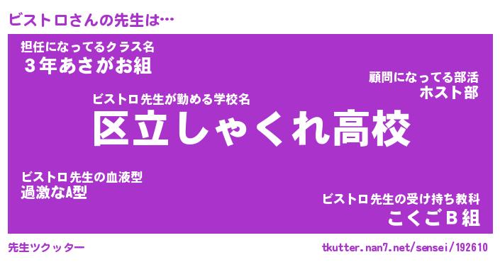 | 意味不明あだ名 | 『ペロリンビストロ』『永久保存ビストロ』 |
