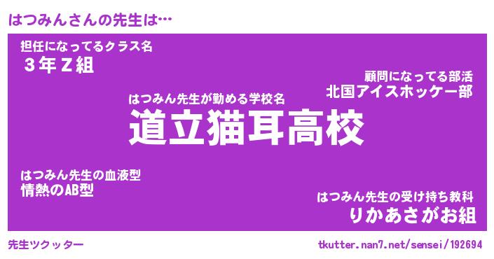 | 意味不明あだ名 | 『ペロリンはつみん』『永久保存はつみん』 |