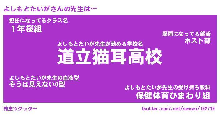 | ヘコむあだ名 | 『よしにー』『つくし』『よし太郎』 |