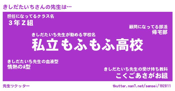 | 肩書あだ名 | 『きしだたいち店長』『きしだたいち教頭』 |