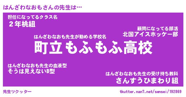 | ポケモン風あだ名 | 『ハンチュウ』『ハンザダネ』 |