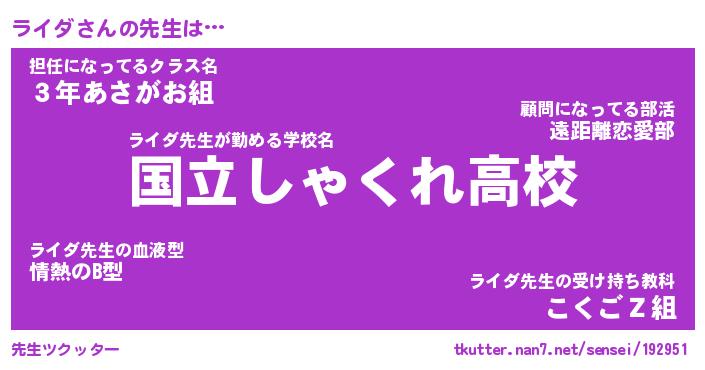 | ポケモン風あだ名 | 『ライチュウ』『ライダダネ』 |