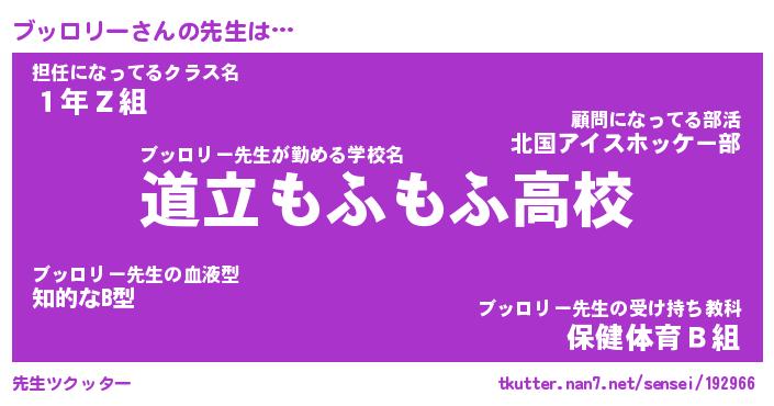 | ファンタジー風あだ名 | 『ブッフェル』『エターナルブッロリーー』 |
