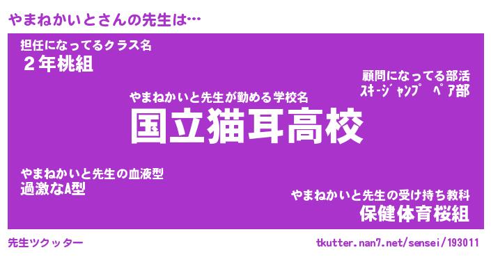 | ヒーロー風カッコイイあだ名 | 『スーパーヤマネカイト』『銀牙騎士ヤマ』 |