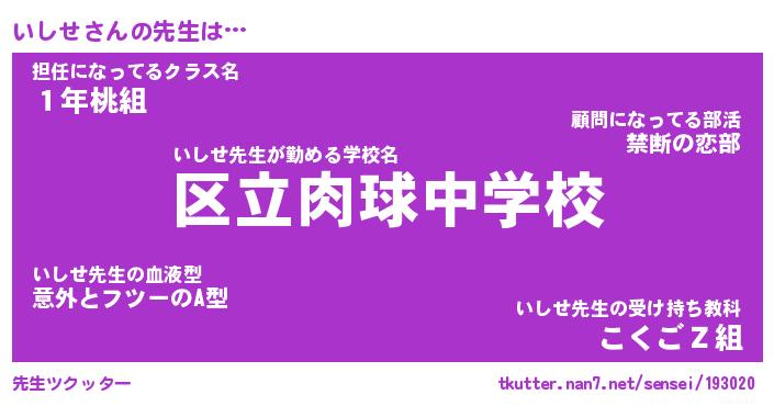 | 意味不明あだ名 | 『ペロリンいしせ』『いしせフォーエバー』 |