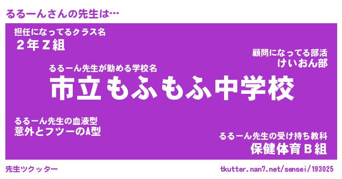 | ファンタジー風あだ名 | 『ルルフェル』『エターナルルルーンー』 |