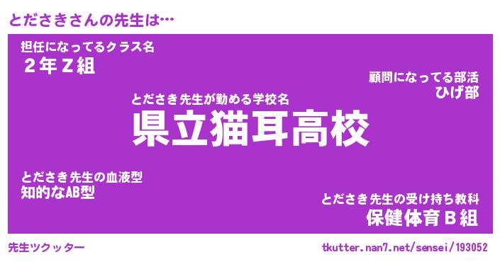 | ファンタジー風あだ名 | 『トダフェル』『エターナルトダサキー』 |