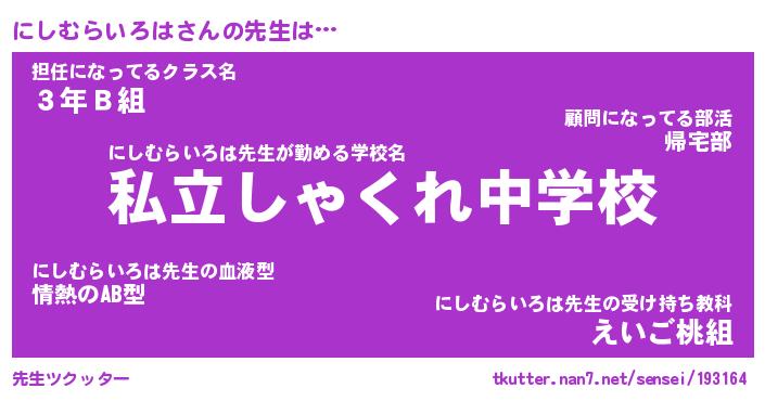 | 肩書あだ名 | 『にしむらいろは御曹司』 |