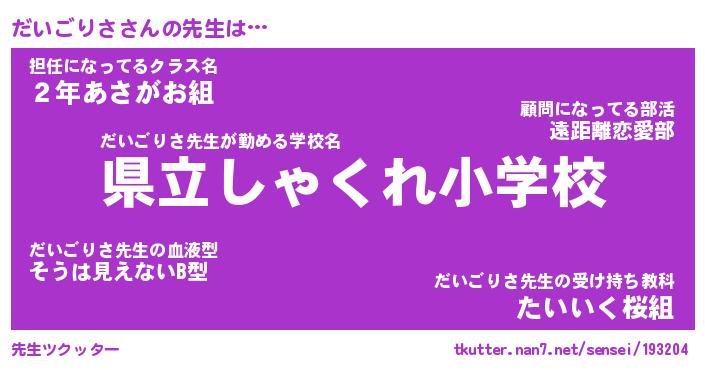 | ファンタジー風あだ名 | 『ダイフェル』『エターナルダイゴリサー』 |