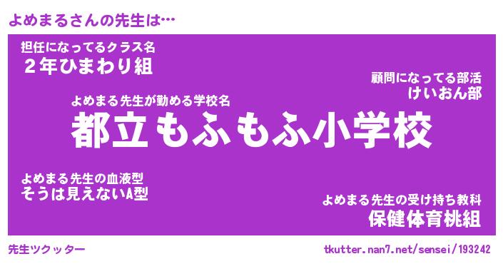 | 意味不明あだ名 | 『ペロリンよめまる』『永久保存よめまる』 |