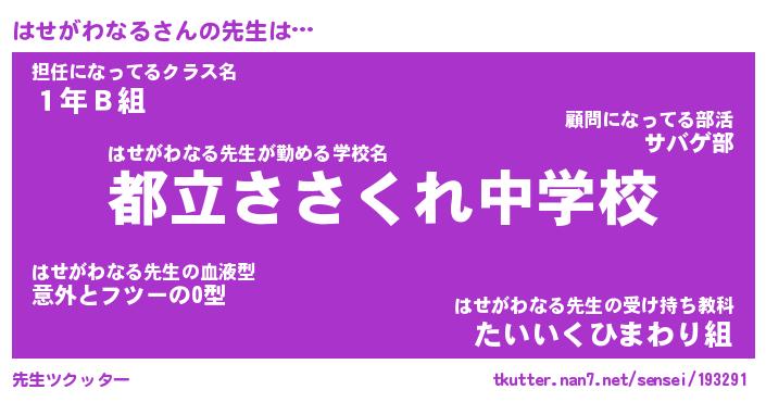 | ポケモン風あだ名 | 『ハセチュウ』『ハセガダネ』 |