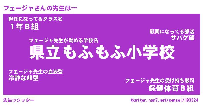 | ファンタジー風あだ名 | 『フェフェル』『エターナルフェージャー』 |
