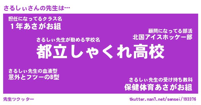 | 意味不明あだ名 | 『ペロリンさるしぃ』『永久保存さるしぃ』 |