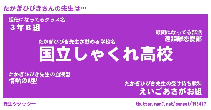 | 伝説のあだ名 | 『伝説のスナイパーたかぎひびき』 |