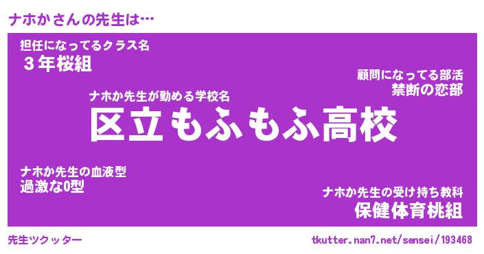 | ヘコむあだ名 | 『ナホにゅー』『酢こんぶ』 |