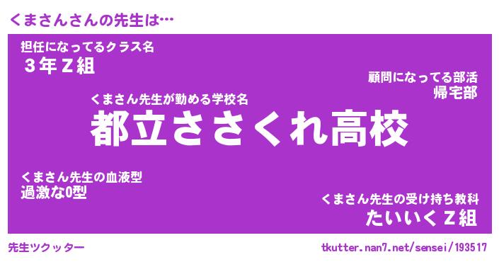 | 意味不明あだ名 | 『ペロリンくまさん』『永久保存くまさん』 |