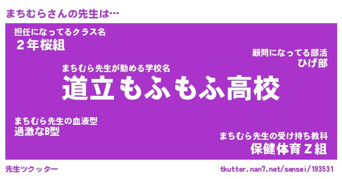 | 意味不明あだ名 | 『ペロリンまちむら』『永久保存まちむら』 |