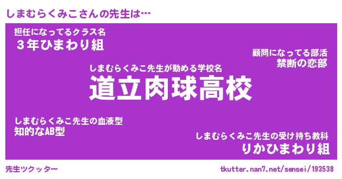 | 意味不明あだ名 | 『ペロリンしまむらくみこ』 |