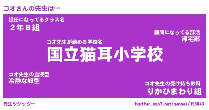 | ファンタジー風あだ名 | 『コオフェル』『エターナルコオー』 |