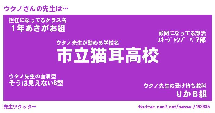 | ポケモン風あだ名 | 『ウタチュウ』『ウタノダネ』 |
