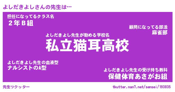 | ポケモン風あだ名 | 『ヨシチュウ』『ヨシダダネ』 |