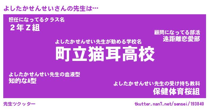 | 伝説のあだ名 | 『封印されし竜騎士よしたかせんせい』 |
