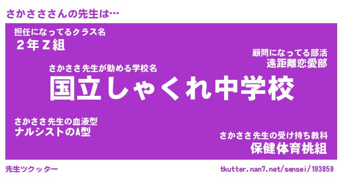 | 意味不明あだ名 | 『ペロリンさかささ』『永久保存さかささ』 |