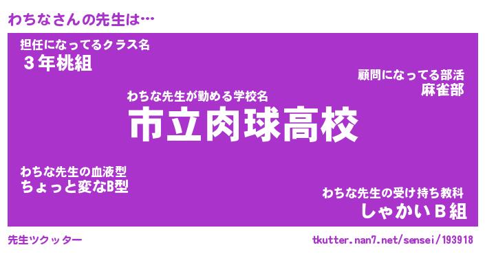 | ヘコむあだ名 | 『わちふぇ~』『酢こんぶ』『わちお』 |