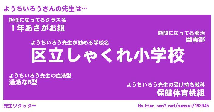 | ヒーロー風カッコイイあだ名 | 『スーパーヨウチイロウ』『銀牙騎士ヨウ』 |
