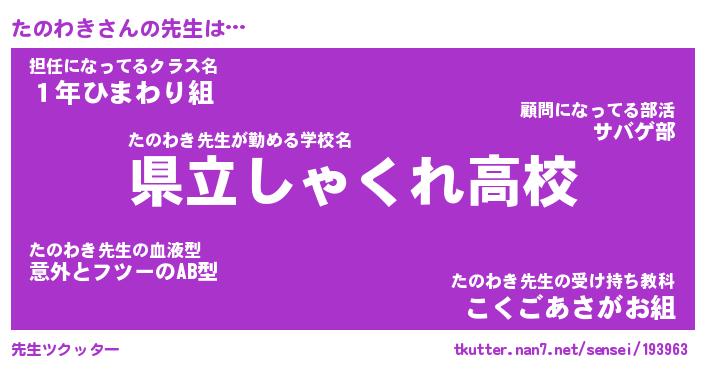 | ファンタジー風あだ名 | 『タノフェル』『エターナルタノワキー』 |