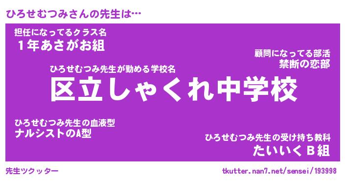 | 伝説のあだ名 | 『封印されしスナイパーひろせむつみ』 |