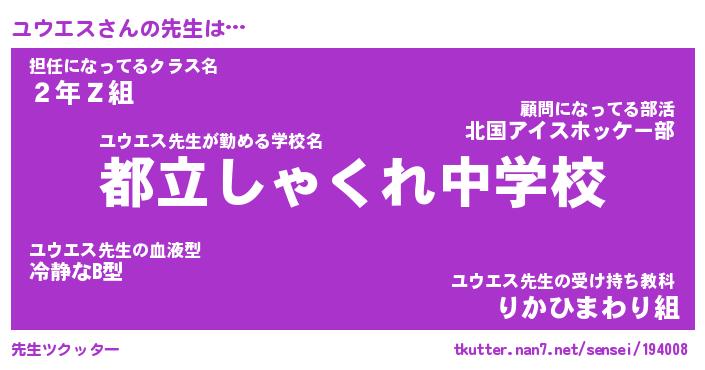 | ポケモン風あだ名 | 『ユウチュウ』『ユウエダネ』 |