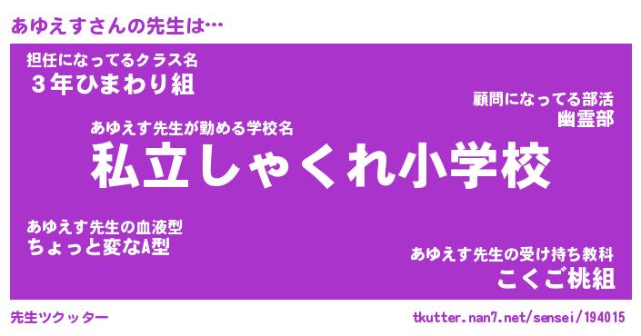 | 意味不明あだ名 | 『ペロリンあゆえす』『永久保存あゆえす』 |