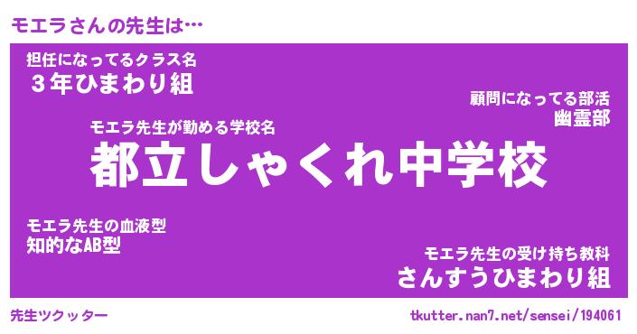 | ヒーロー風カッコイイあだ名 | 『スーパーモエラ』『ウルトラモエラマン』 |