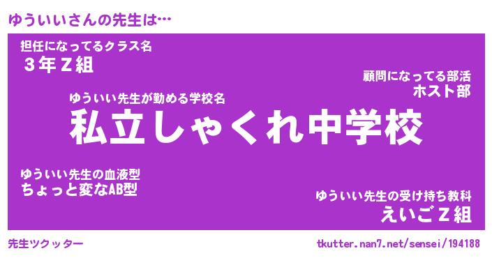 | ファンタジー風あだ名 | 『ユウフェル』『エターナルユウイイー』 |