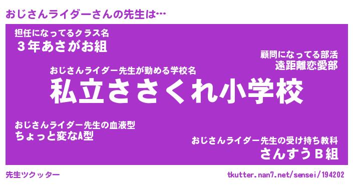 | 男性向けラノベタイトル風あだ名 | 『おじさんライダーの憂鬱』 |