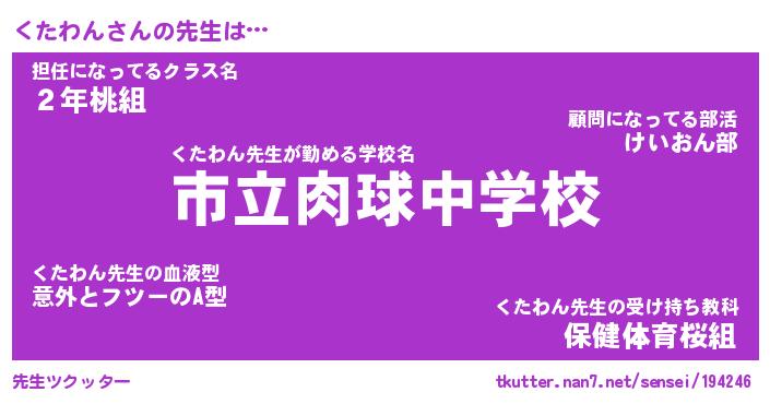| 意味不明あだ名 | 『ペロリンくたわん』『永久保存くたわん』 |