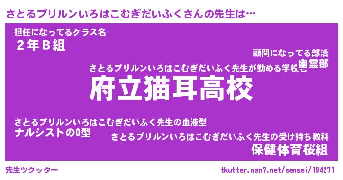| 伝説のあだ名 | 『封印されし竜騎士さとるプリルンいろはこむぎだいふく』 |