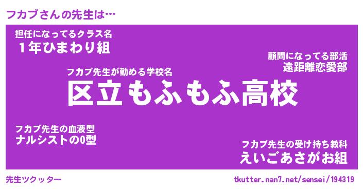 | ファンタジー風あだ名 | 『フカフェル』『エターナルフカブー』 |