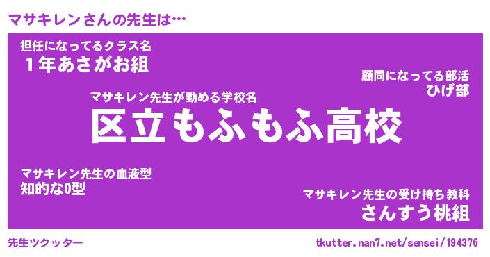 | ファンタジー風あだ名 | 『マサフェル』『エターナルマサキレンー』 |