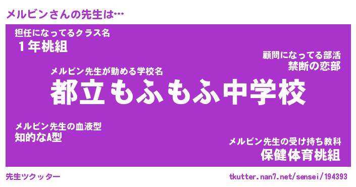 | 意味不明あだ名 | 『ペロリンメルビン』『永久保存メルビン』 |