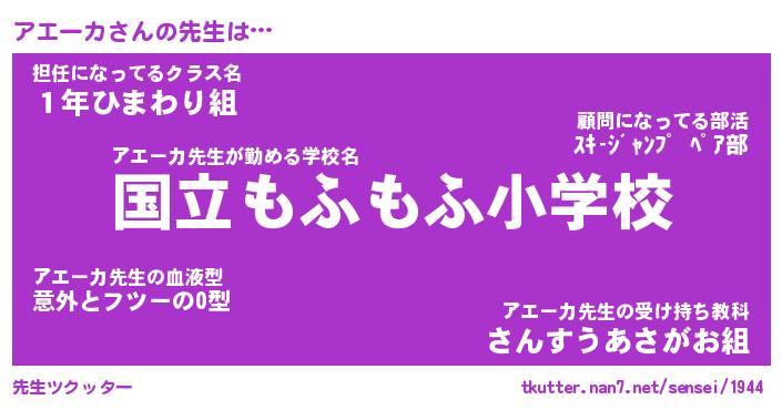 | ピコ太郎風あだ名 | 『アコ史郎』『ピア史郎』『アエ五郎』 |