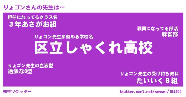 | ポケモン風あだ名 | 『リョチュウ』『リョゴダネ』 |