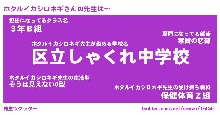 | 伝説のあだ名 | 『封印されしスナイパーホタルイカシロネギ』 |