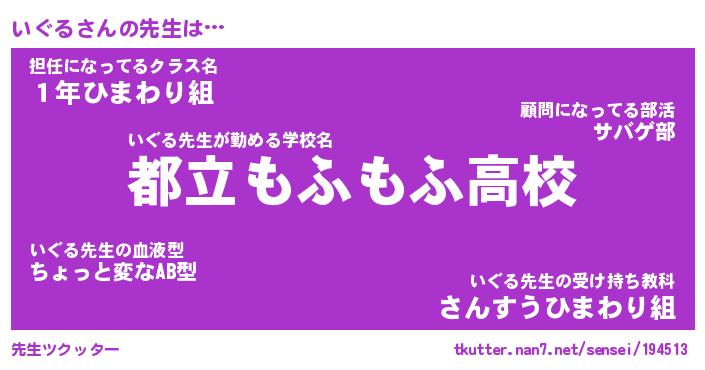 | ヘコむあだ名 | 『いぐにゅー』『つくし』『いぐっ子』 |