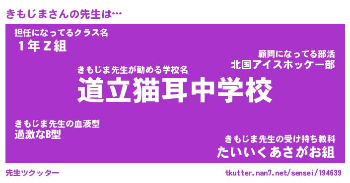 | 意味不明あだ名 | 『ペロリンきもじま』『永久保存きもじま』 |