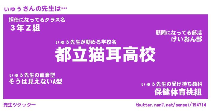 | 意味不明あだ名 | 『ペロリンぃゅぅ』『ぃゅぅフォーエバー』 |