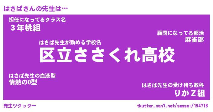 | ヒーロー風カッコイイあだ名 | 『スーパーハサバ』『ウルトラはさばマン』 |