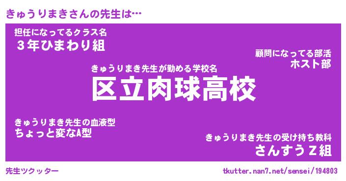 | ヒーロー風カッコイイあだ名 | 『スーパーキュウリマキ』『黄金騎士キュ』 |